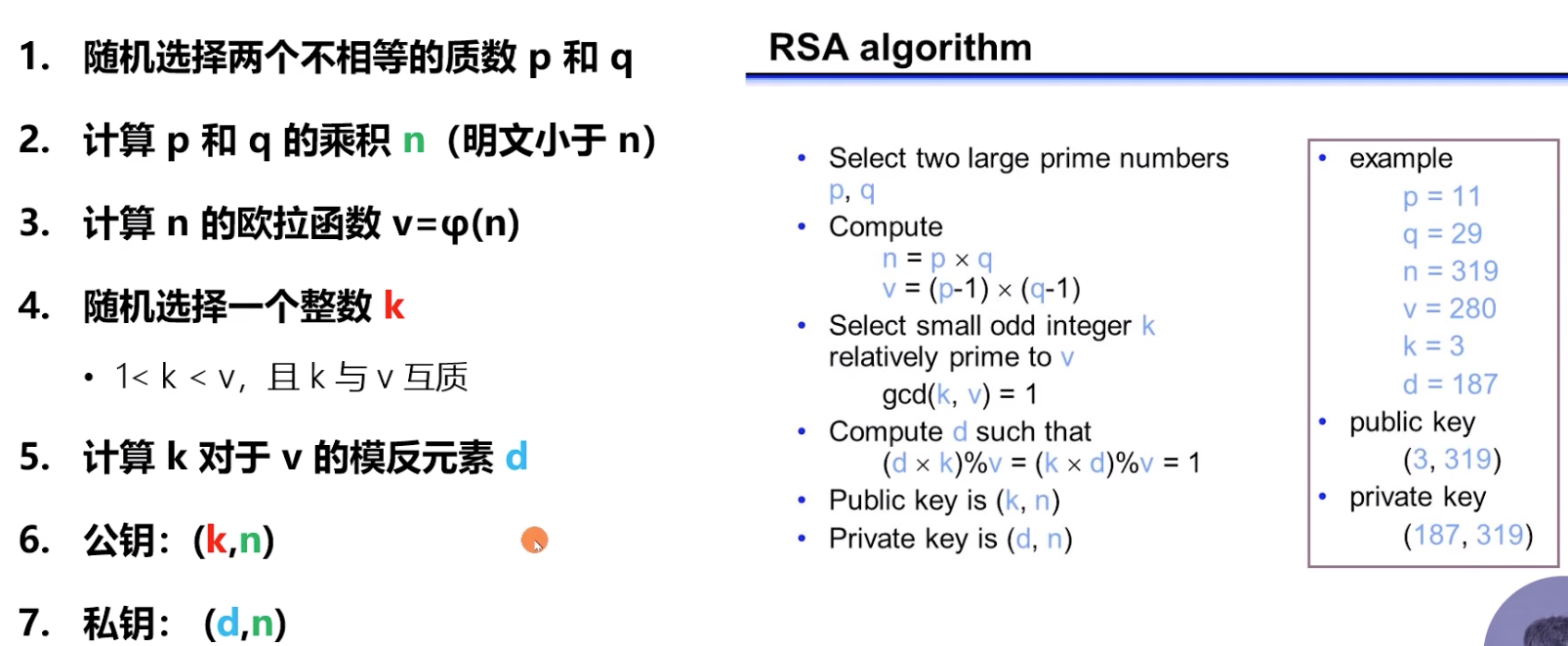 - 我们已知 k, n, 需要计算出 d (私钥)